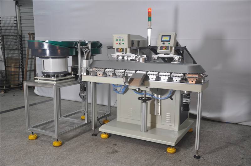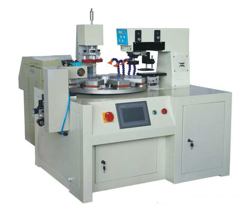 1、 印刷速度比轉(zhuǎn)盤(pán)機(jī)慢,但印刷工件可以大一些,六個(gè)顏色一次套色印刷完成。