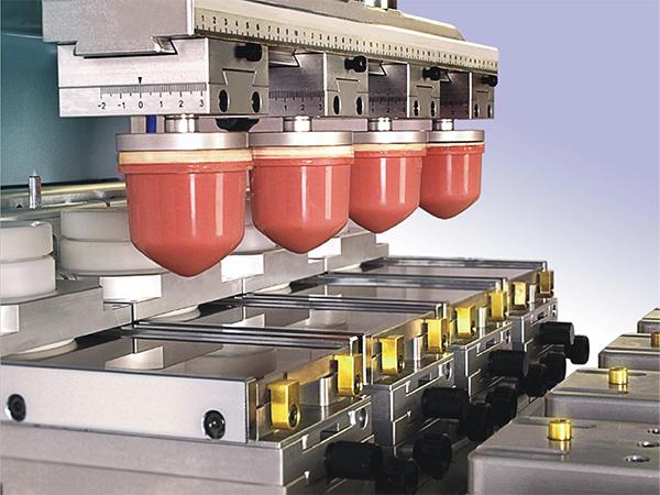 移印機(jī)主要由移印鋼板印版裝置(含供墨裝置)、移印機(jī)刮墨刀、移印膠頭和印刷臺(tái)等組成,