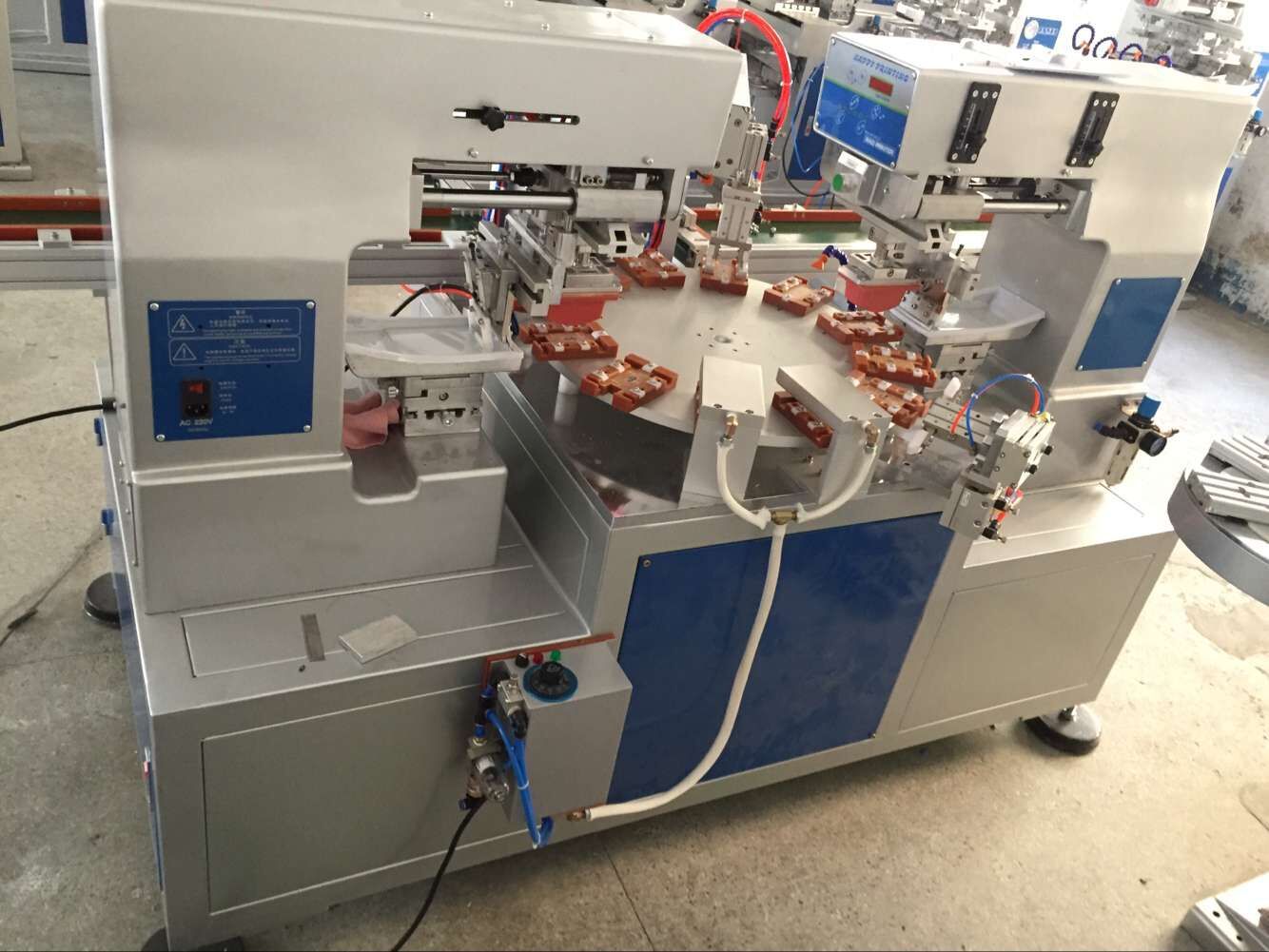 1、 印刷速度比轉盤機慢,但印刷工件可以大一些,四個顏色一次套色印刷完成。